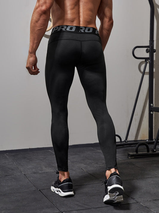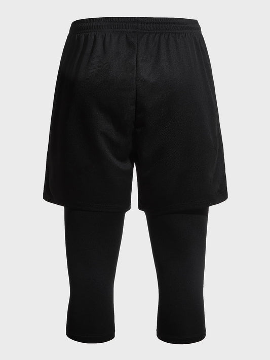 Men 2 In 1 Graphic Print Drawstring Waist Capris Sports Tights