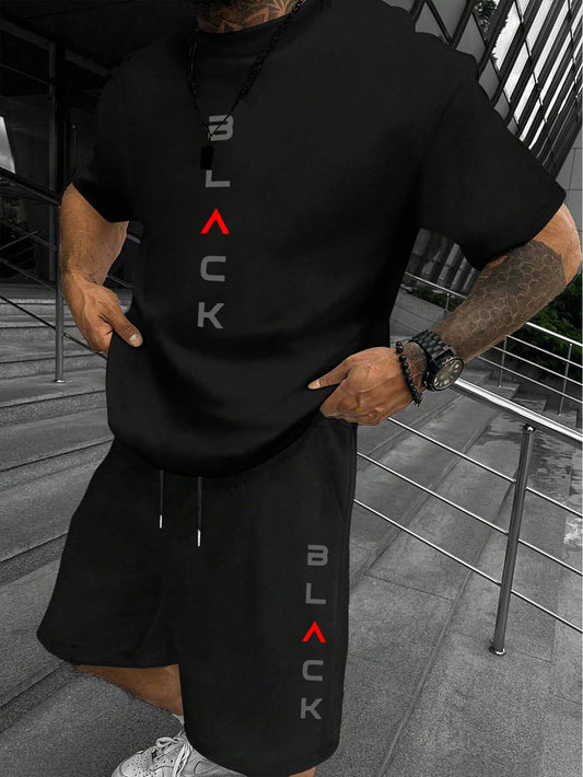 Men's Letter Print T-Shirt And Drawstring Waist Shorts Set