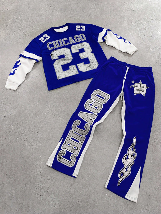 Manfinity Sporsity Men's Casual Patchwork Hoodie Sweatshirt Set