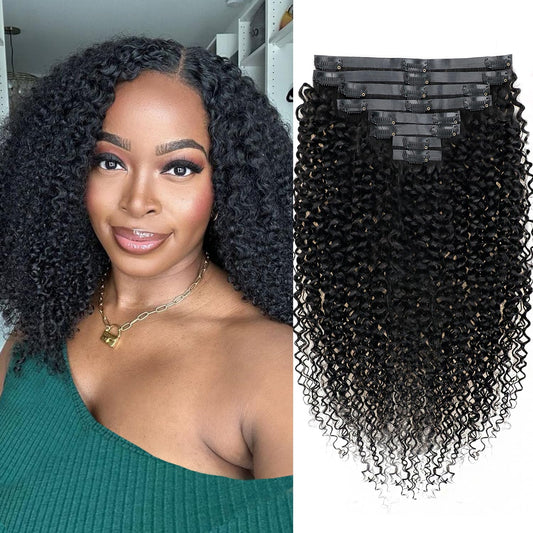 Seamless Clip In Hair Extensions Real Human Hair Invisible PU Skin Weft Kinky Straight Clip Ins Human Hair Extensions 8pcs with 18Clips Per Set 120g(18inch,Natural Black)