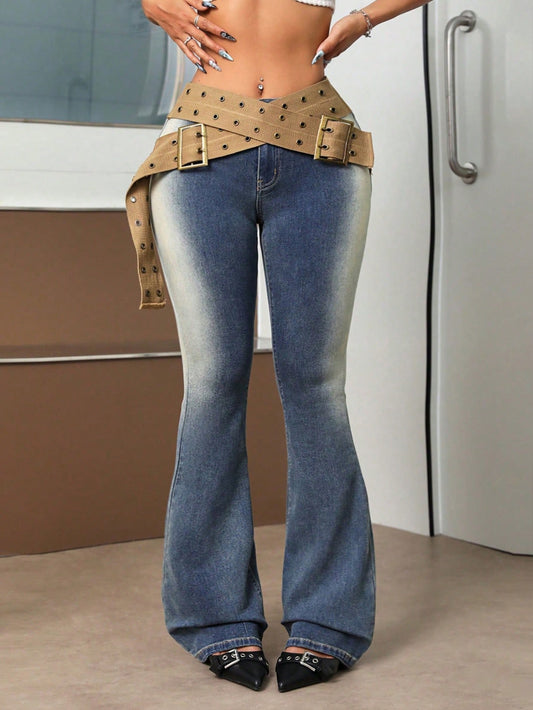 Women's Gradient Flare Jeans With Belt