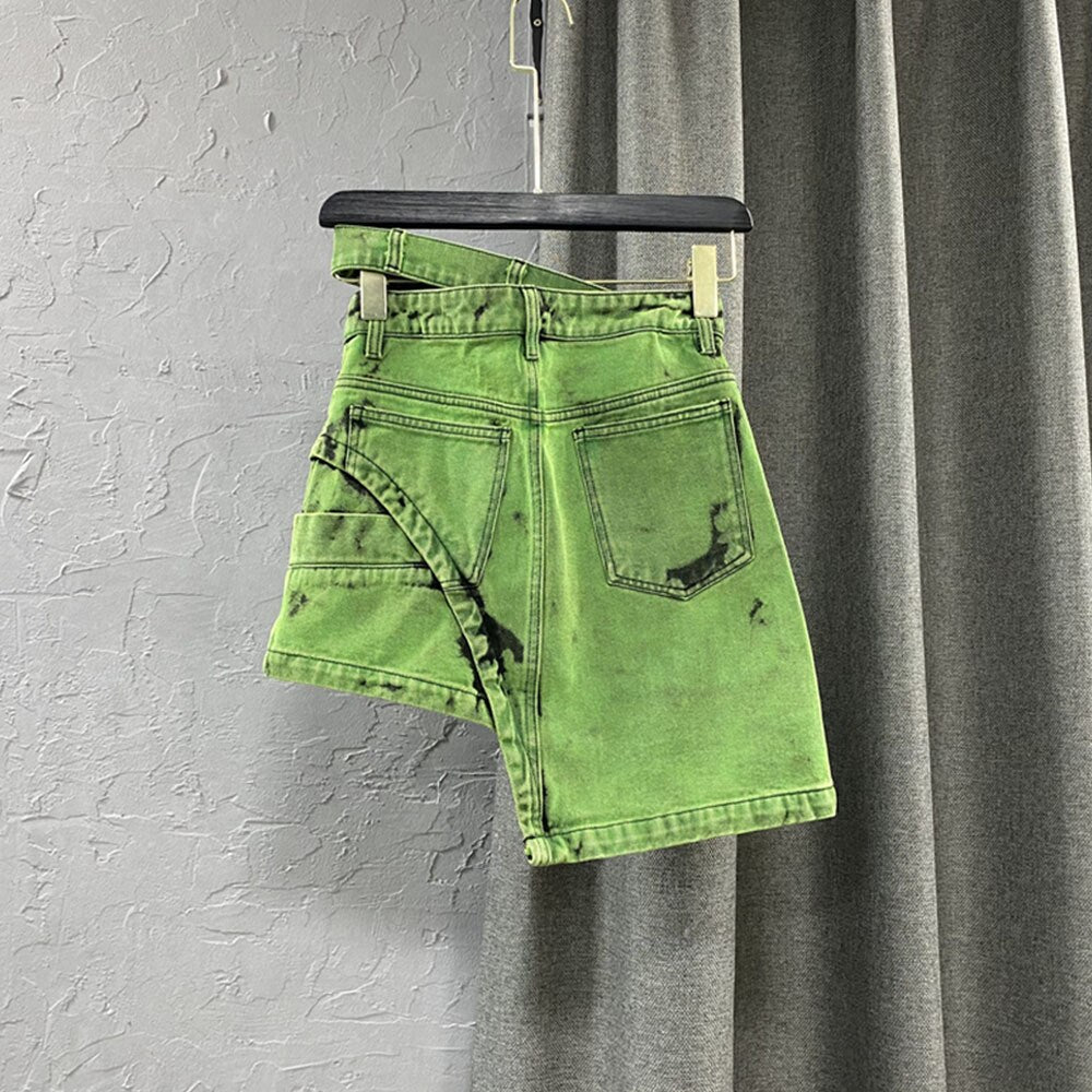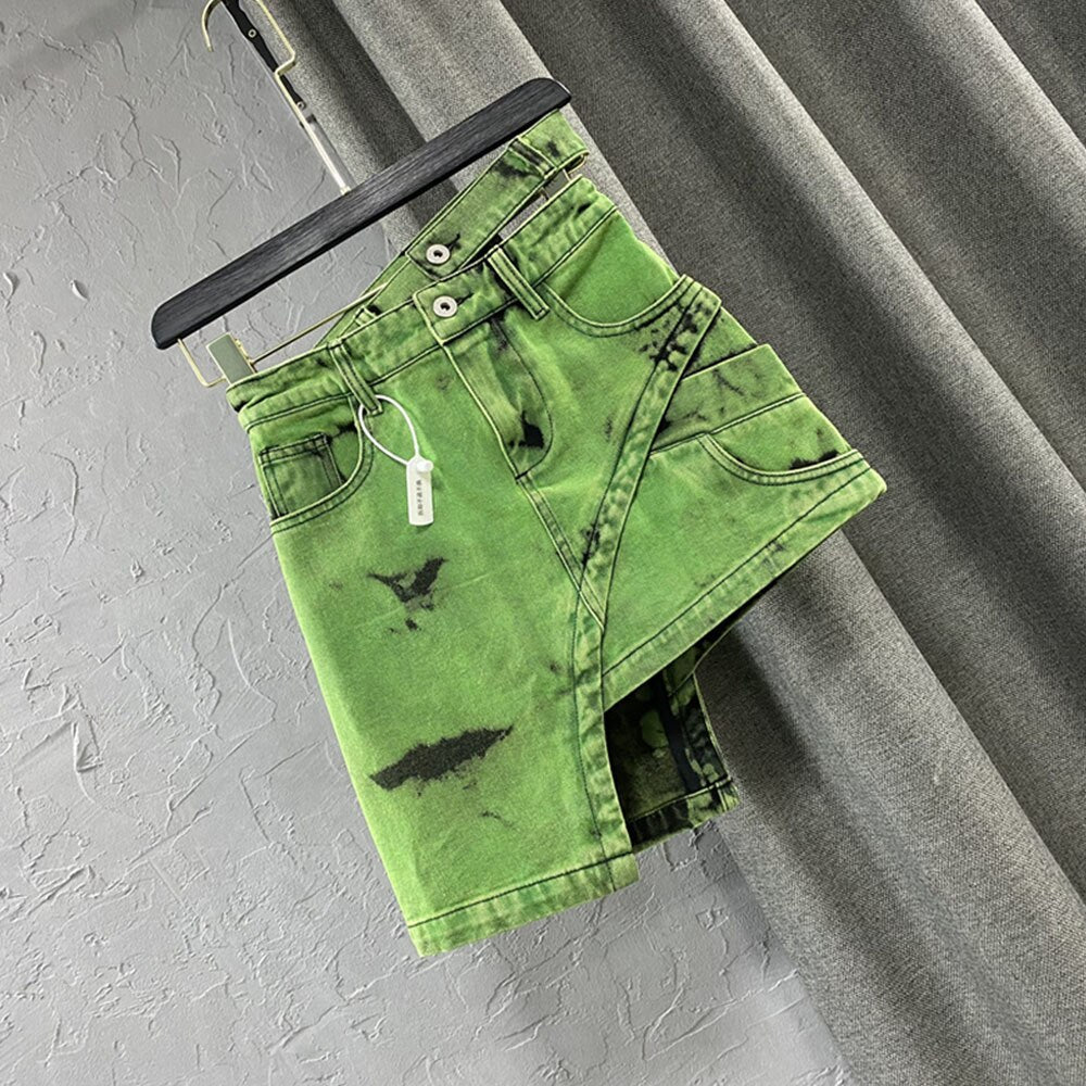 Summer Fashion Green Tie Dye Denim Skirt