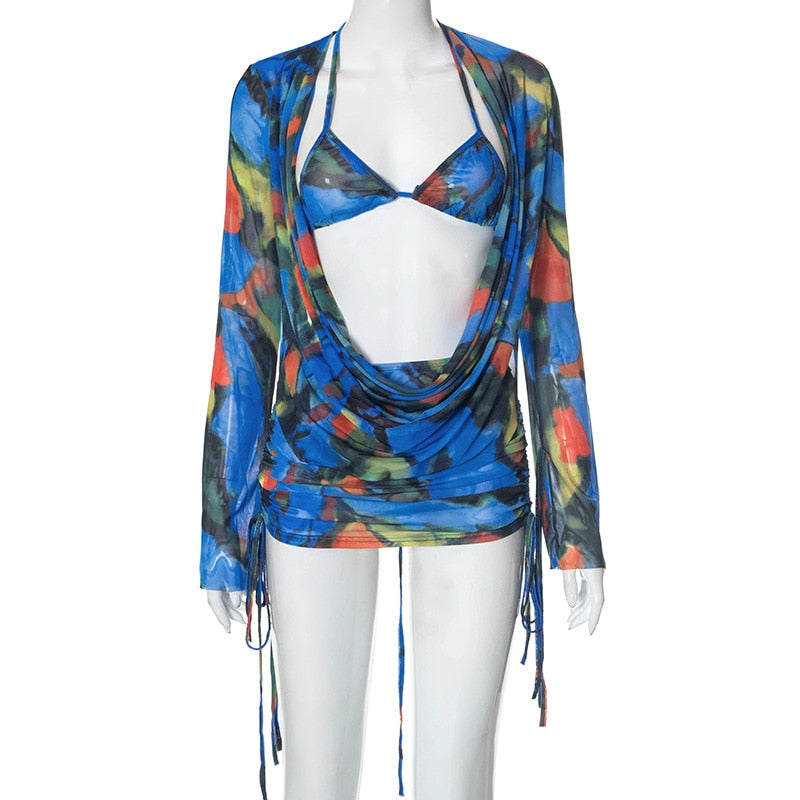 Women Skirt Set Summer Tie-Dye Mesh